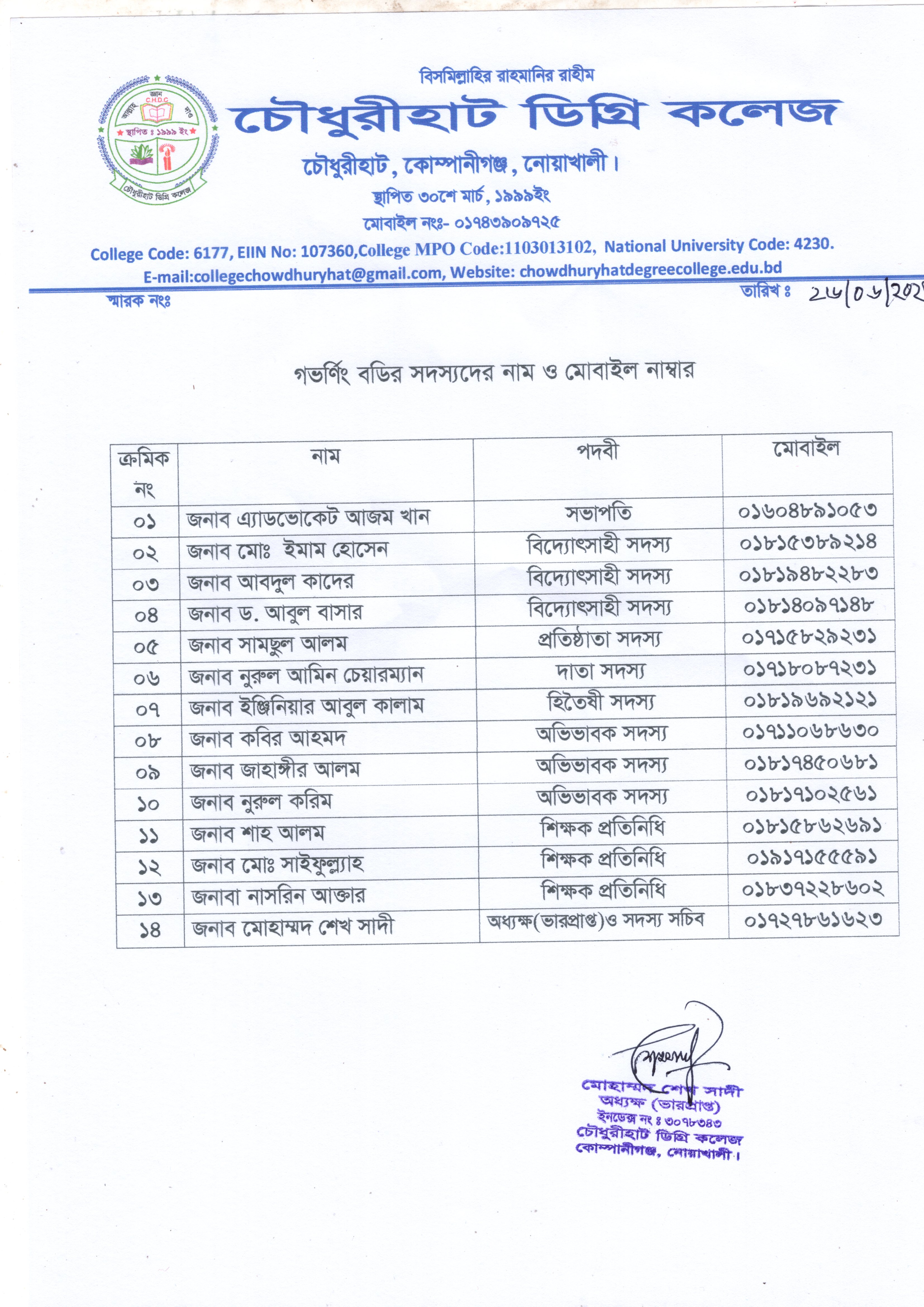 অধ্যক্ষ (ভারপ্রাপ্ত) ও সদস্য সচিব |